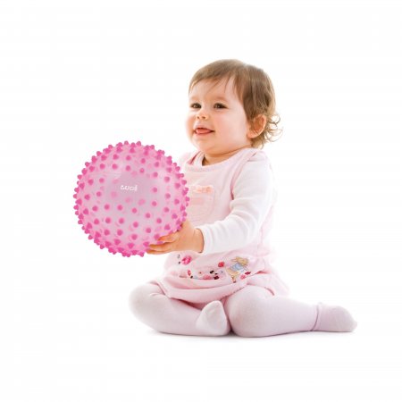 När du rullar bollen med de små knopparna på din bebis händer, fötter eller andra ställen på kroppen, märker barnet sin egen kropp och får stärkt det taktila sinnet, vilket är mycket viktigt för kroppsförståelse och kroppsmedvetenhet, och därmed för vår interaktion och kontakt med andra människor.