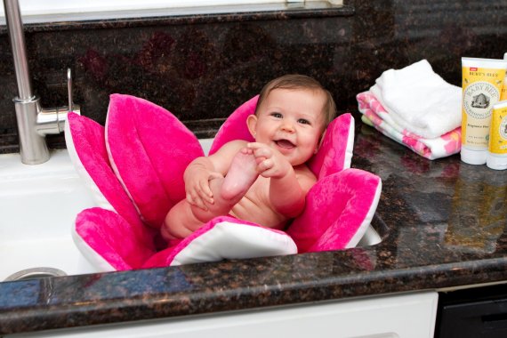 När bebisen blir för stor för att ligga i handfatet eller i det lilla babybadkaret kan Blooming Bath-blomman användas i badkaret istället.
