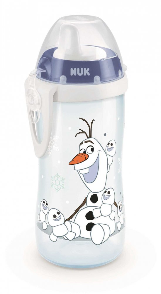 Cool NUK Kiddy drickflaska med ett glatt Frost-motivNUK-drickflaskan är speciellt utformad så att den är lätt att hantera för små händer. Den är utrustad med en klämma på flaskans sida så att den är lätt att fästa på bältet, på ryggsäcken eller på barnvagnen.