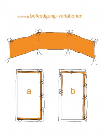 Remmar/band för fastsättning av spjälskyddet i U-form och på tre sidor.
