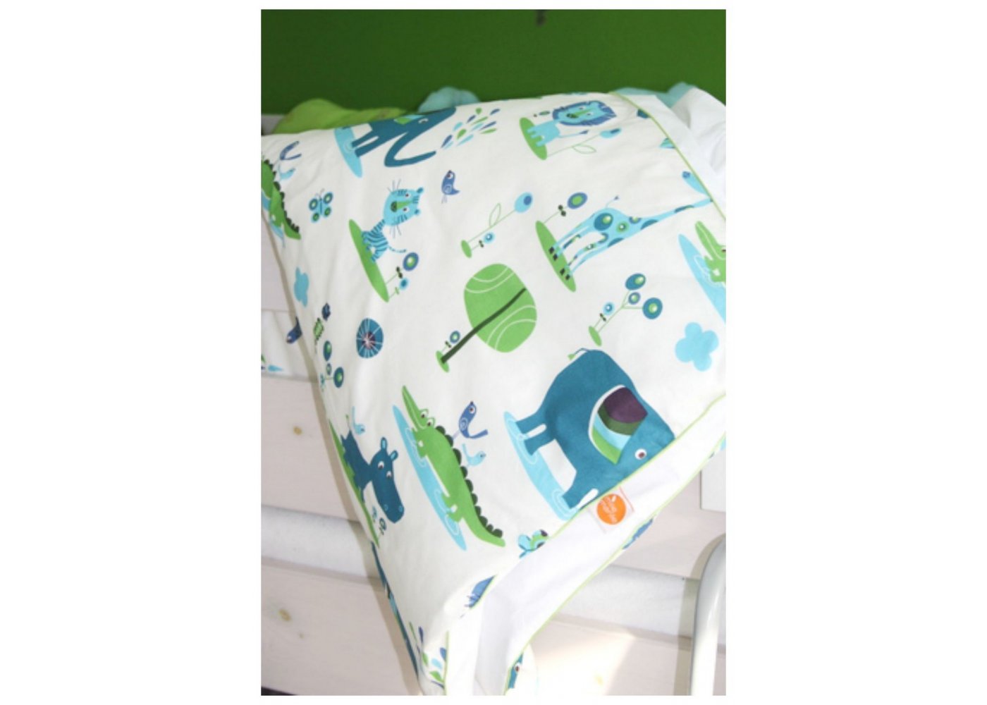 MilleMarille Juniorbäddset i JUICY JUNGLE med de många olika djungeldjuren på är tillverkat av allergivänligt tyg. Djungeltyget är samtidigt fint att se på och skapar en mysig atmosfär i barnrummet.