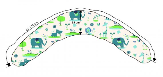 Stor, skräddarsydd och u-formad amningskudde från MilleMarille med motivet "JUICY JUNGLE.När du väljer en stor amningskudde har du en trogen följeslagare från det ögonblick då magen börjar växa under din graviditet.