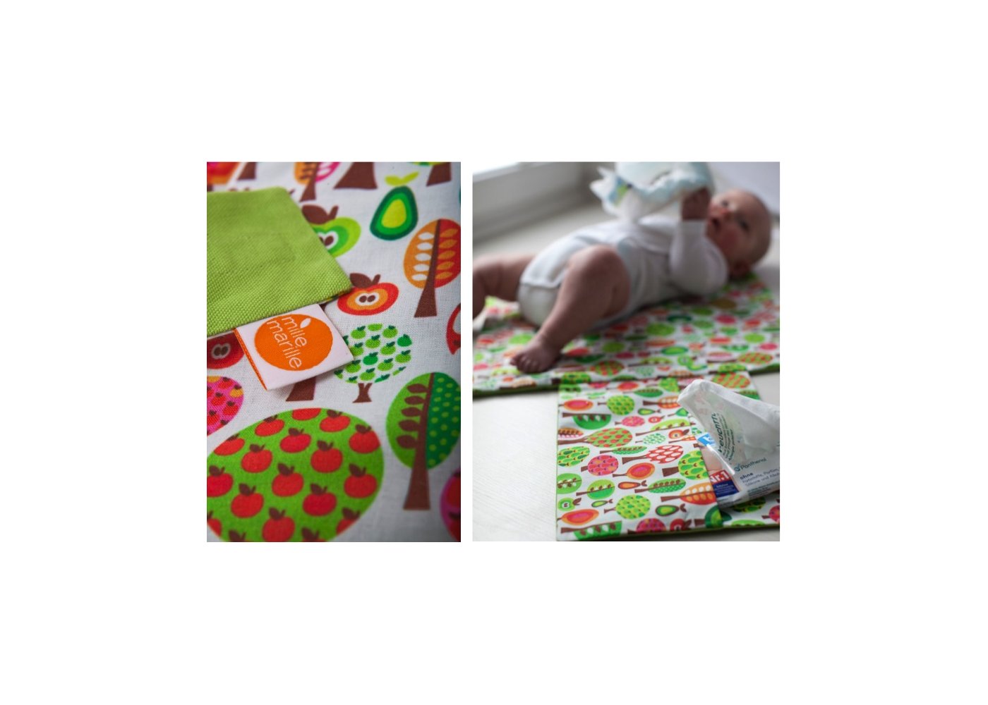 Skötunderlägg to go från MilleMarille i den vackra och eleganta designen RETRO TREESEtt skötunderlägg är praktiskt när man ska ut och inte vill ha så mycket att bära på. Kanske ska man till djurparken eller ut på en liten promenad i stan där man kan behöva byta blöja.