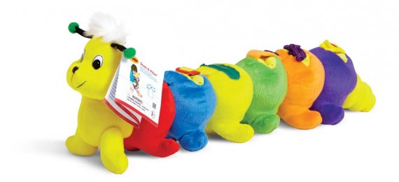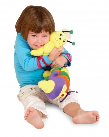 Prisbelönade fjärilslarver från Edushape.Stor larv som har många användningsområden. Den är ett mjukt gosedjur men också en fin larv att leka med och utforska.