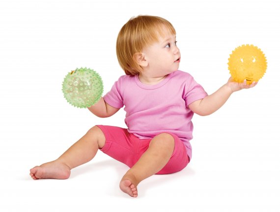 Bollarna bidrar till att utveckla barnets känsel och grovmotorik.