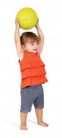 Man kan givetvis också alltid leka med bollarna utomhus. Eftersom de har små piggar är det lättare för barnets små händer att kasta dem och gripa dem.