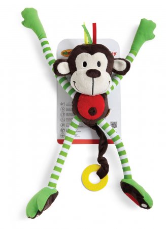 Färgglad och mjuk apa med ett glatt ansikte.När du drar i armen blir motsatt ben kortare.