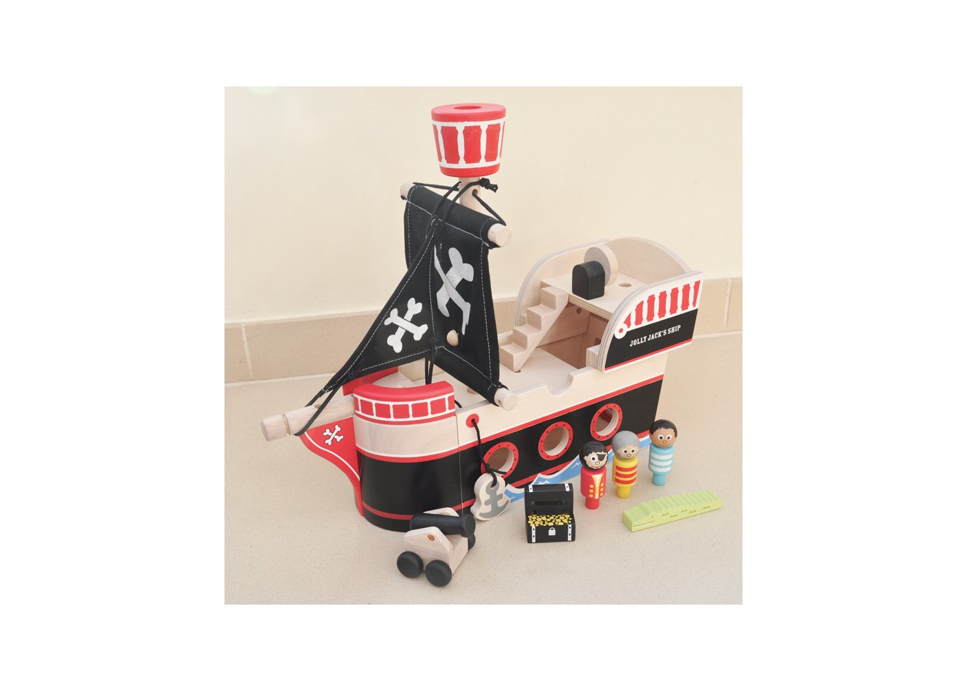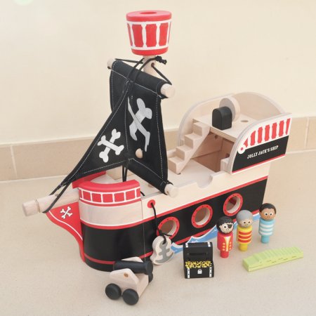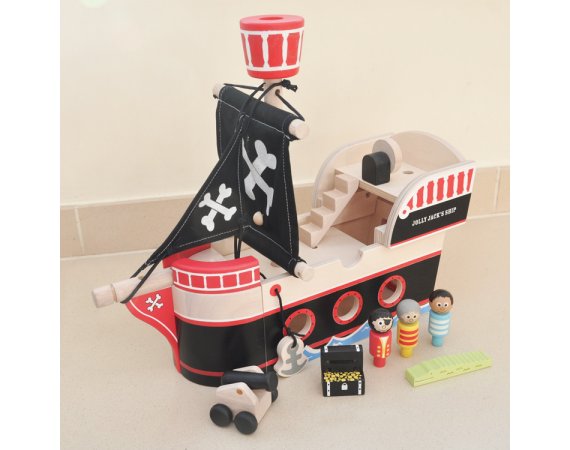 Pirateskepp i trä från Indiga JammSegla ut med Kapten Krok eller Jack Sparrow från Pirates of the Caribbean i detta fina, svarta piratskepp i trä. Möjligheterna är många när man ska leka. Kanske ska den lilla piraten ha ett svärd och en ögonlapp? Oavsett är det upplagt för strid och drama.
