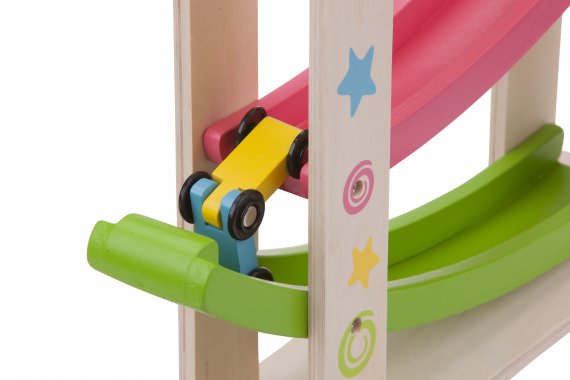 Supertuff bilbana med stjärnor och vackra färger.En rolig leksak man aldrig tröttnar på att leka med. För vad händer egentligen när man låter en bil köra nerför banan, eller kanske två eller tre bilar på en gång? Det kan man testa om och om igen.