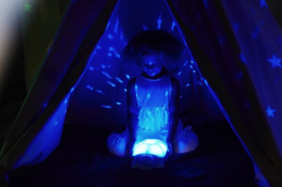 Nattlampan kan därför vara en mycket bra metod för att vänja ditt barn till mörkret. Plötsligt kan det bli riktigt mysigt att ligga i sängen och titta på natthimlen.