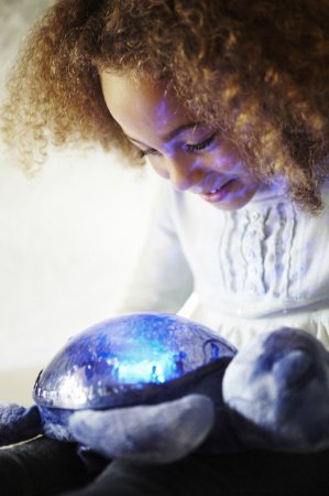 Twilight Turtle kan lysa i blå, grön och röd färg och ditt barn bestämmer själv vilken färg som ska lysa, eller om den ska byta mellan alla tre färger.