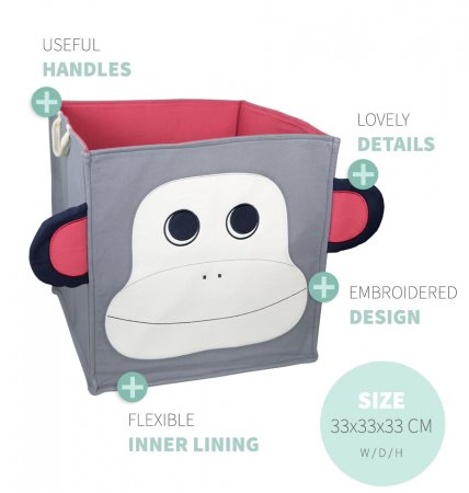 Med denna förvaringslåda med apan Meja blir det lättare för ditt barn att hålla prydligt i sitt rum. Rummet kommer se lite mer barnvänligt ut. Det kan ju också vara så att ditt barn inte tycker att det är så tråkigt att plocka undan när saker ska ner i Meja-förvaringslådan.