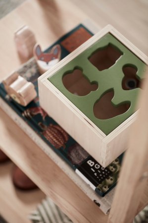 Söt och festlig plocklåda med djur från Kid's ConceptPlocktlådan har söta djurhuvuden och en uggla i olika former för att komma igenom hålen i lådan.