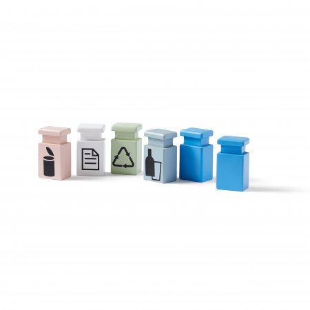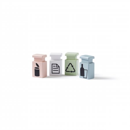 Sopbilen är utrustad med 4 sorteringshinkar som kan lyftas upp och ner med liften på baksidan av bilen. Sorteringshinkarna har olika symboler för papper, glas och metall. Den är så cool och rolig.