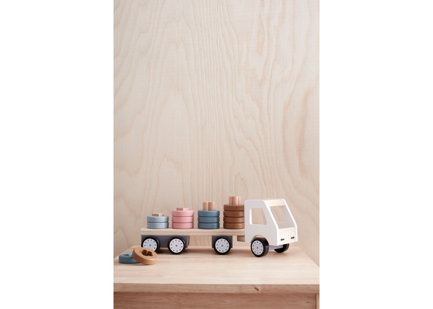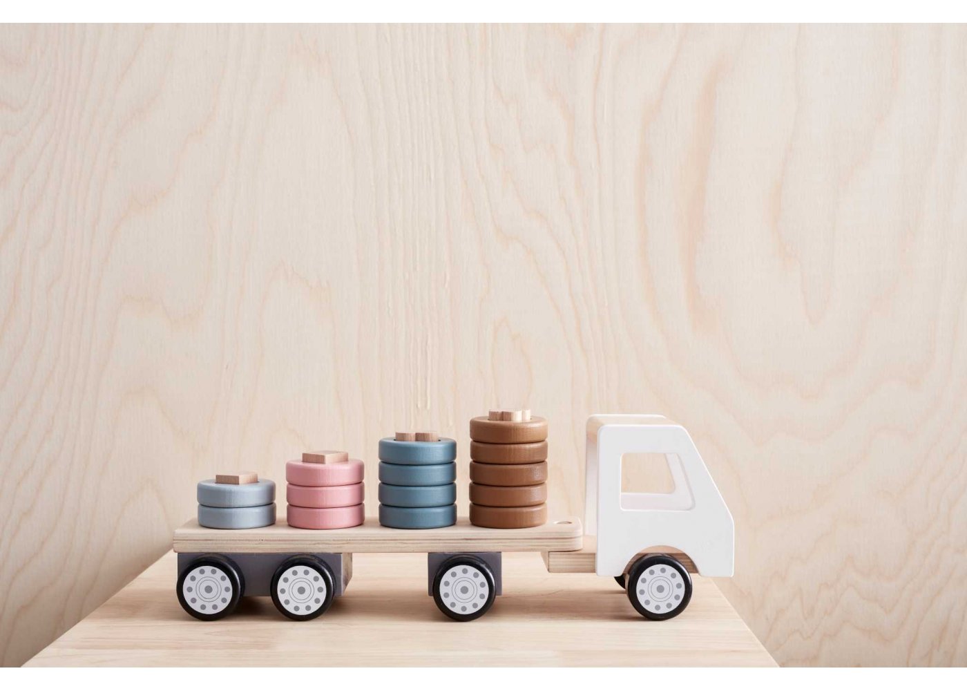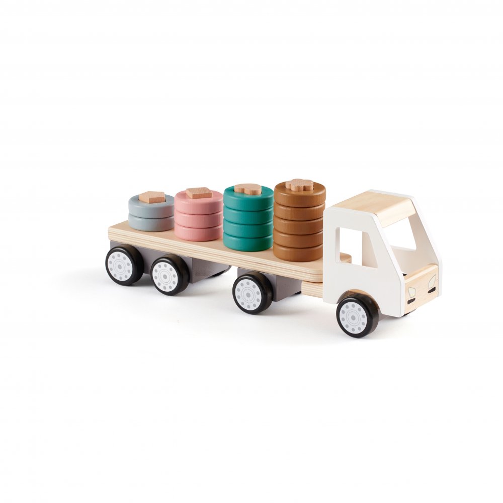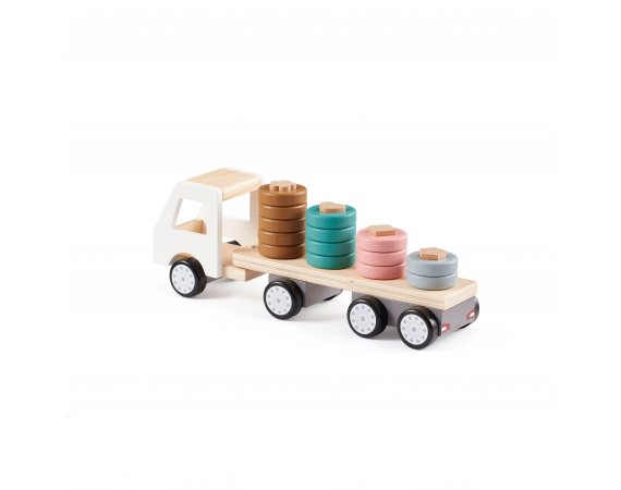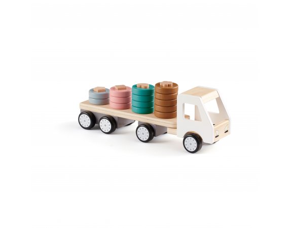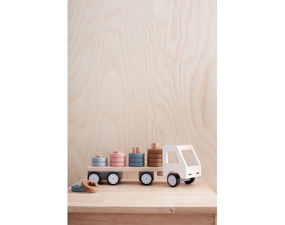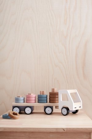 Rolig lastbil i trä och vackra färger från Kid's ConceptDenna lastbil är en solid träleksak som definitivt kommer att utmana ditt barns kreativitet och fantasi.