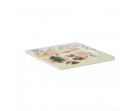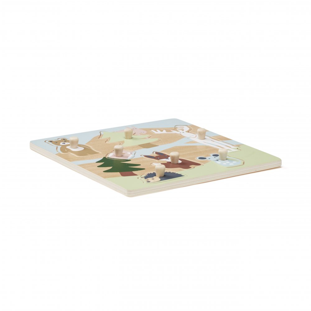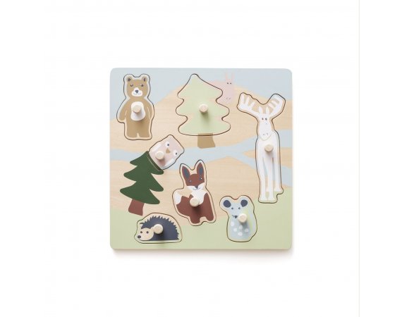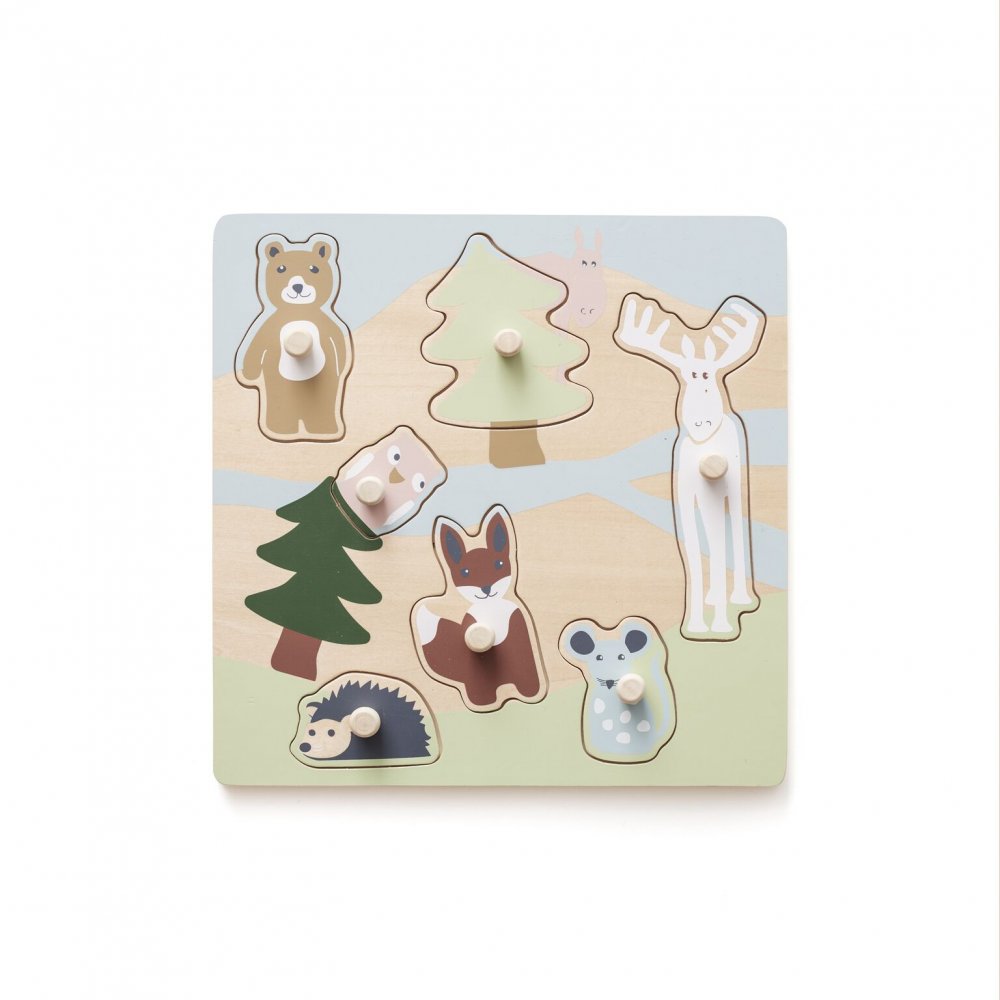 Roligt och pedagogiskt pussel med skogsdjur för de småPusselbitar har träknoppar, så det är lätt för barnet att ta tag i bitarna.