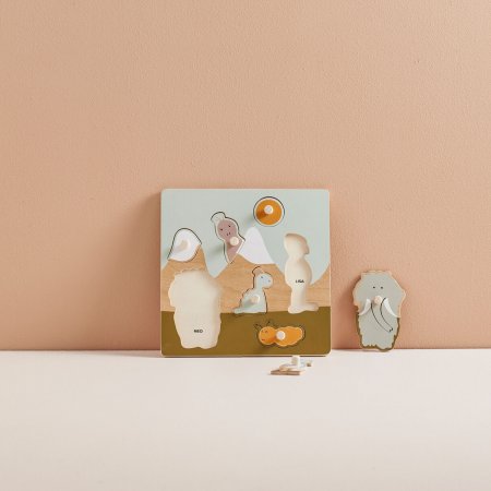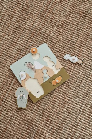 Roligt och pedagogiskt pussel med roliga djur för de små.Pusselbitarna har träknoppar, så det är lätt för barnet att ta tag i bitarna.
