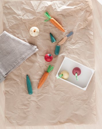 Grönsakslåda från Kid's ConceptFin, vit trälåda fylld med härliga, nyttiga grönsaker.