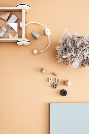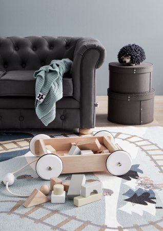 Eftersom den fina vagnen har ett dragsnöre är vi säkra på att både klossarna och vagnen kommer med på många finga promenader i ert hem.