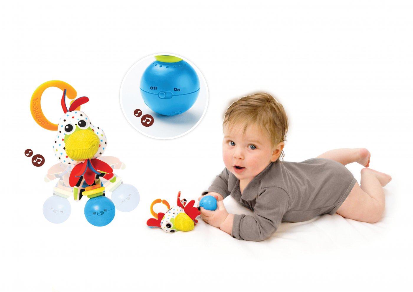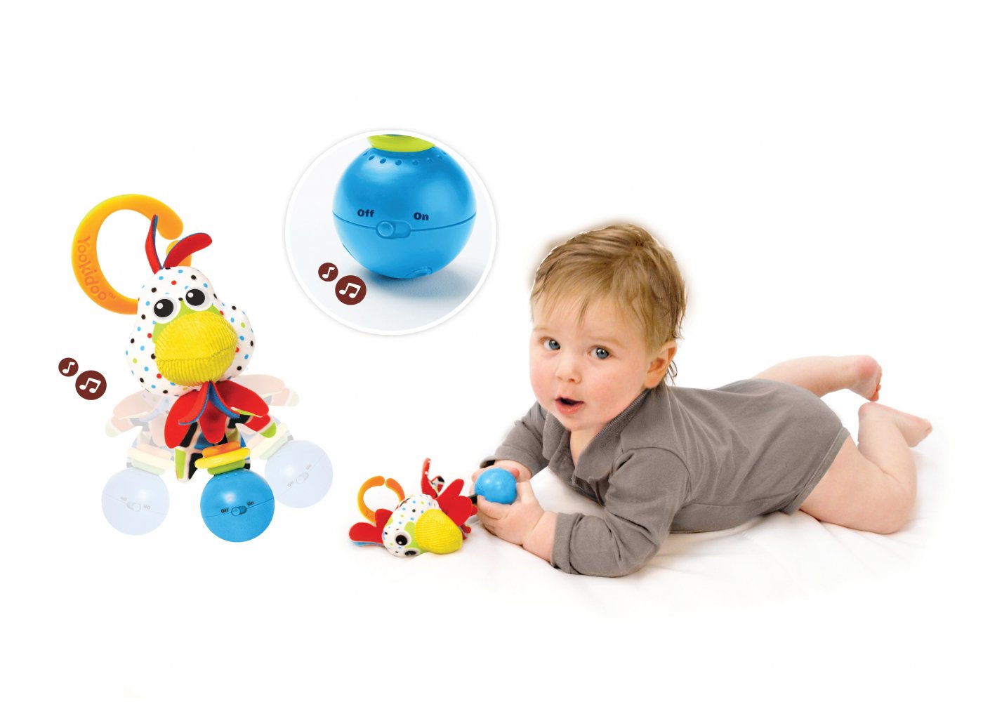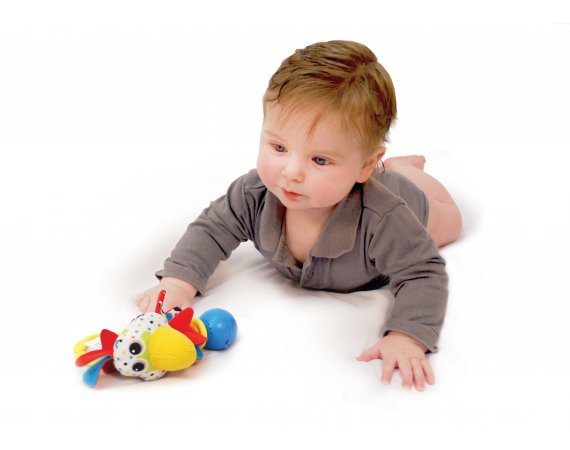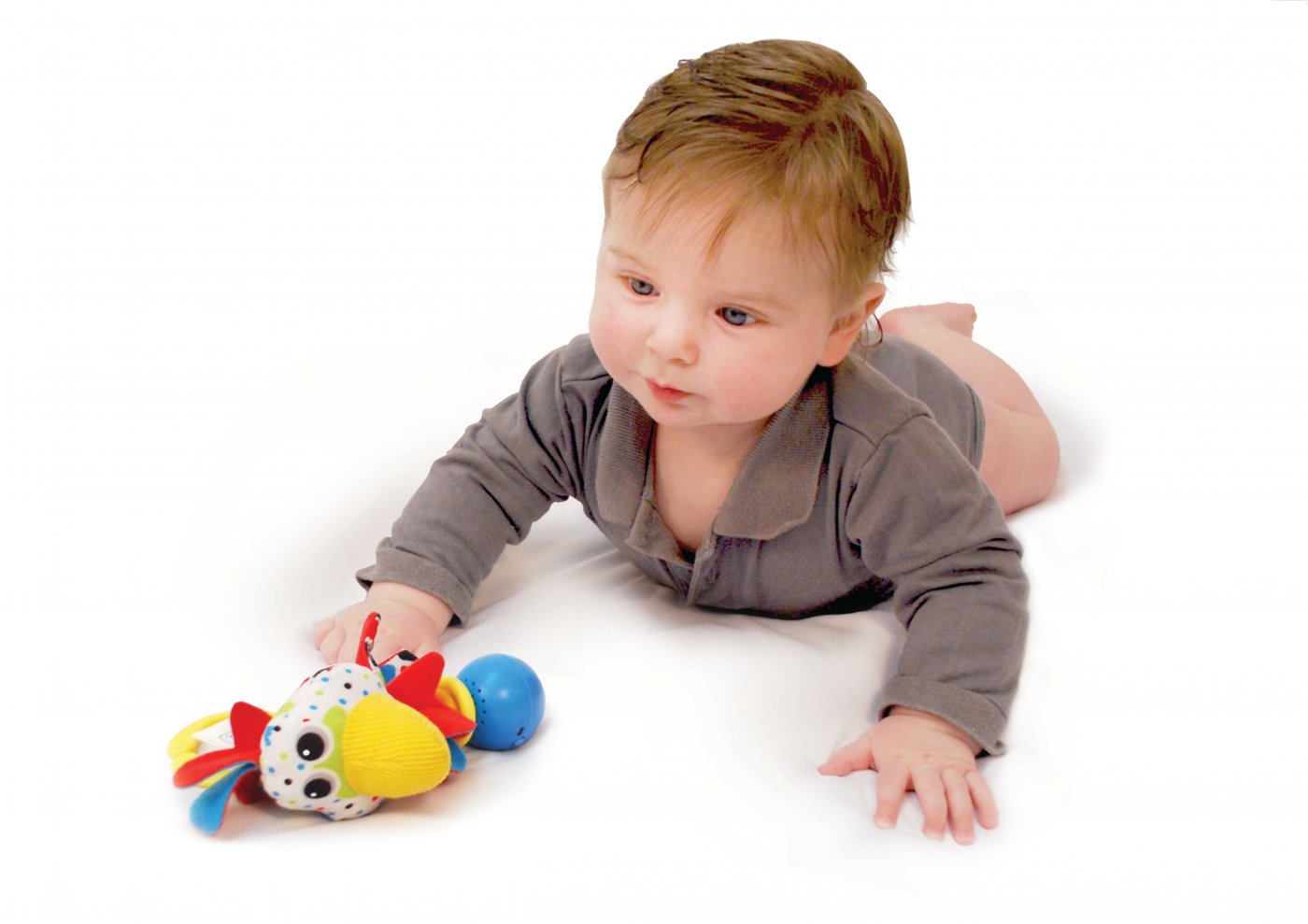 Ko-skallran har ett bra grepp till de små händerna och ger massor av roliga och lärande aktiviteter som stimulerar hörseln och övar finmotorik.