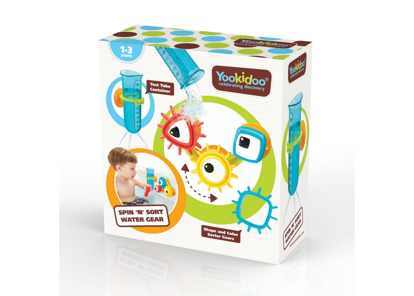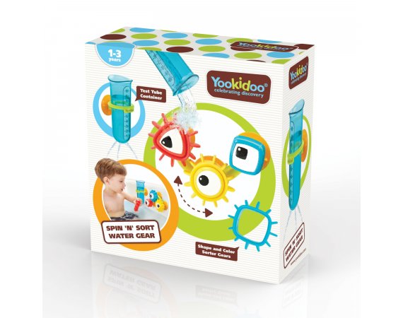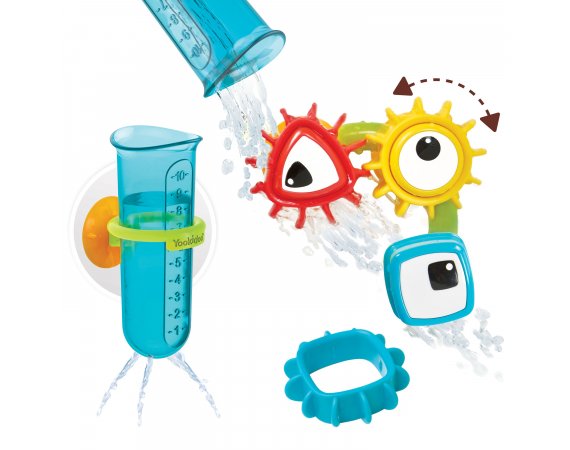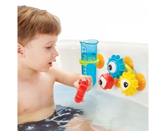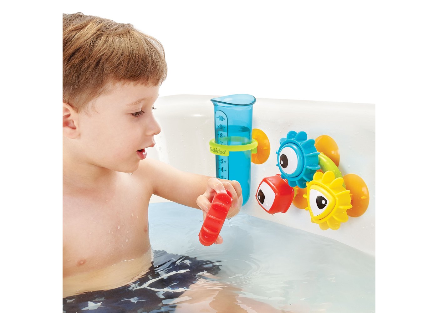 Jaaaa, nu ska vi plaska med vatten!Rolig badleksak med kugghjul i gul, blå och röd färg som gör badtiden till en mysig och rolig stund.