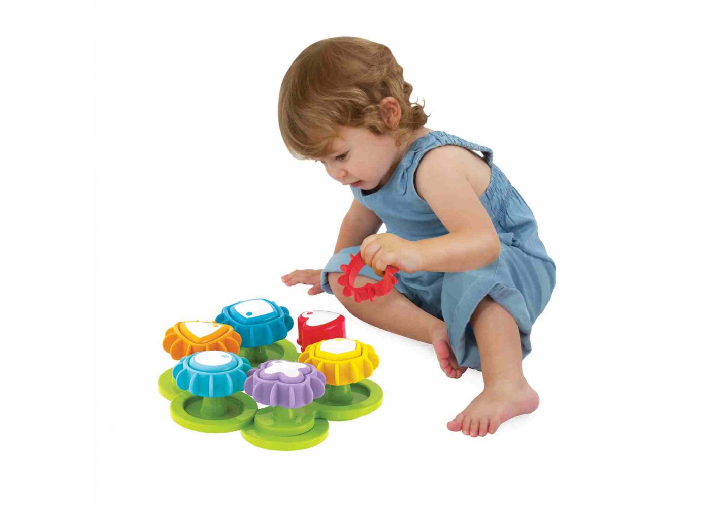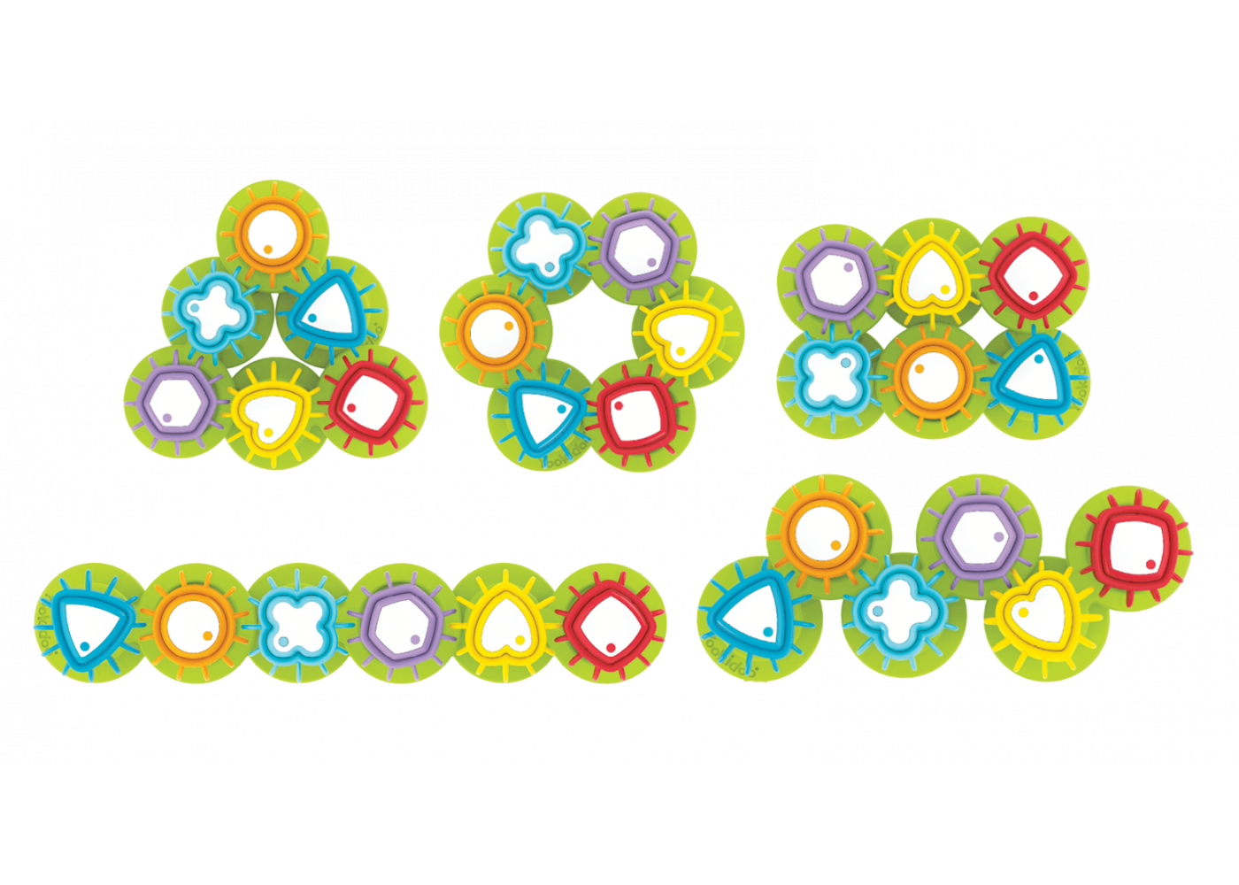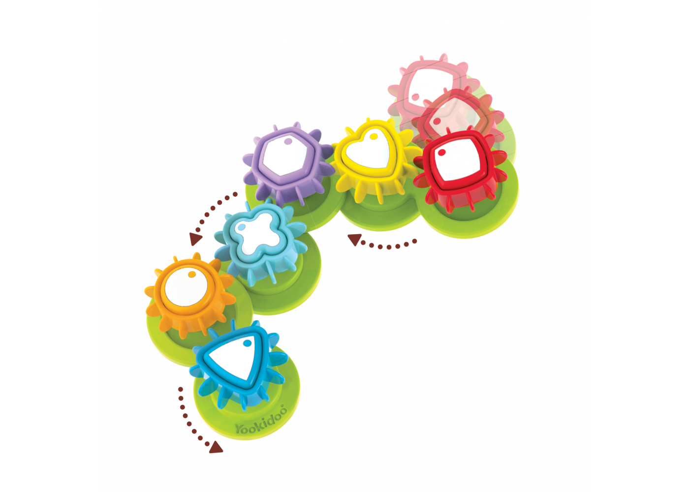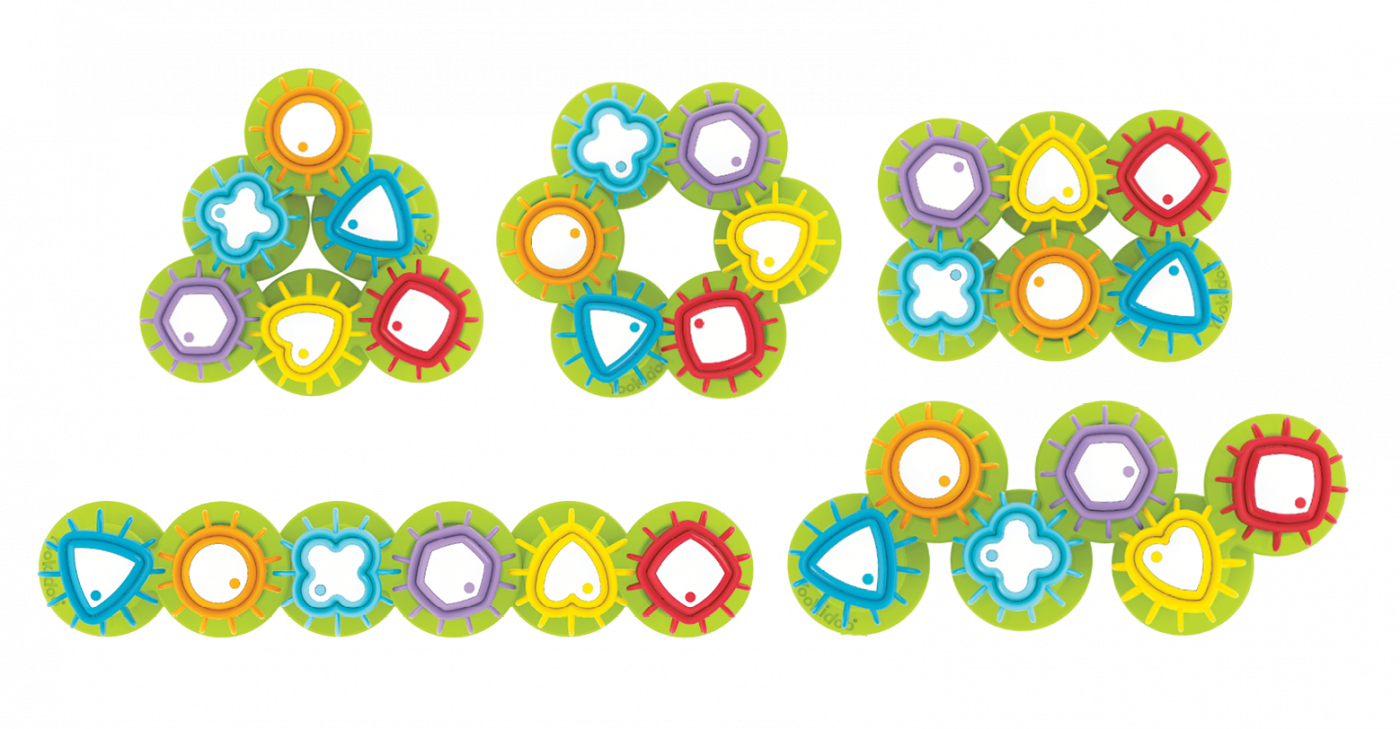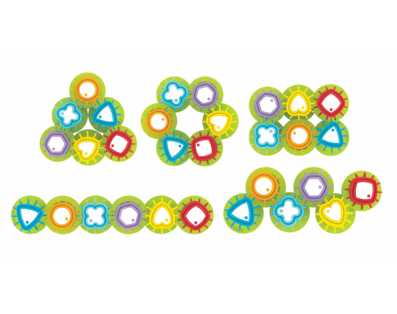 Rolig och pedagogisk leksak som består av färgglada kugghjul.Kugghjulen har olika former och färger och kan monteras villkorligt. Oavsett hur de placeras, så snurrar de!