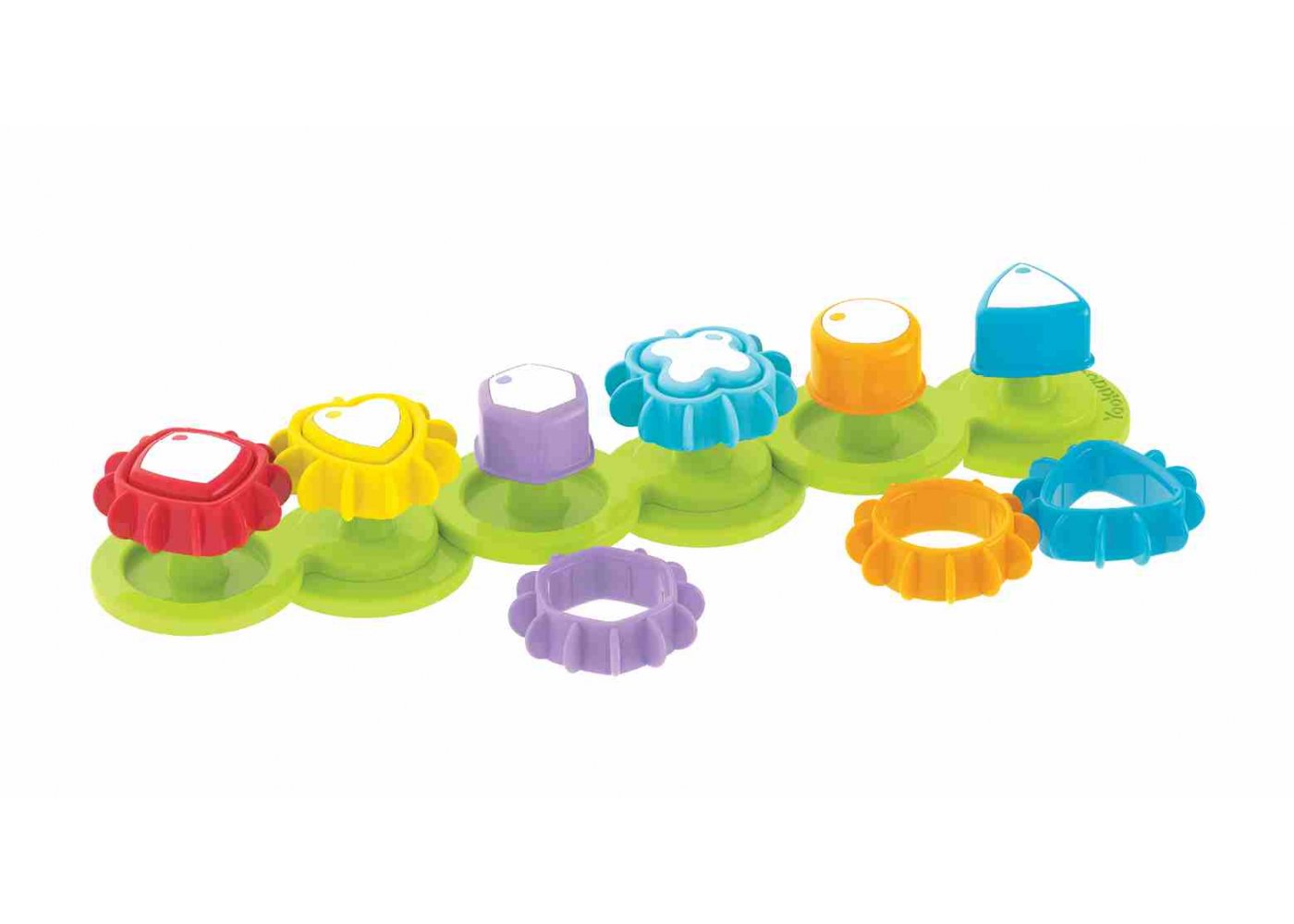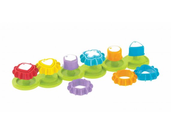 Rolig leksak som stärker barnets fina motoriska färdigheter, och som kan vara ett bra tillfälle att öva på former och färger.