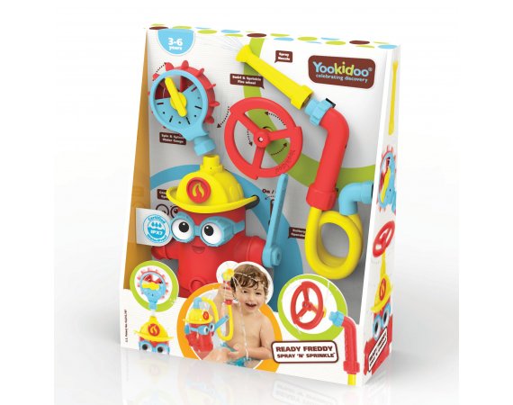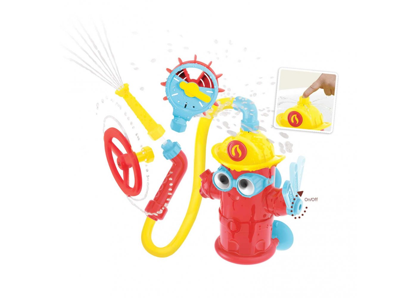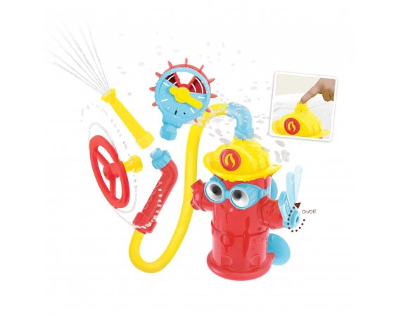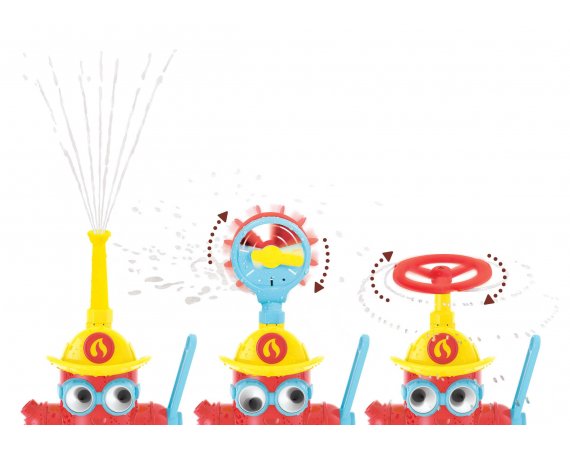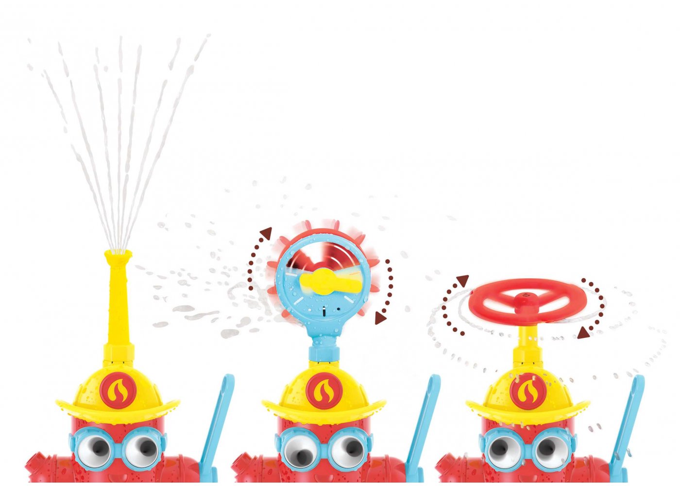 Brandposten kommer med roliga och underhållande effekter att sätta på brandpost och slang. Tryck på toppen av kranen så kommer vatten ut från sidorna! När den är påslagen vrids ögonen runt. Brandposten hämtar vatten från badkaret, vilket är praktiskt och vattenbesparande. Den slås på och av genom att trycka på handtaget på sidan.