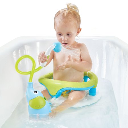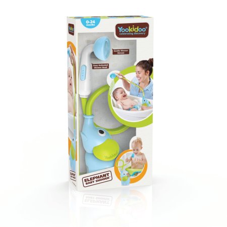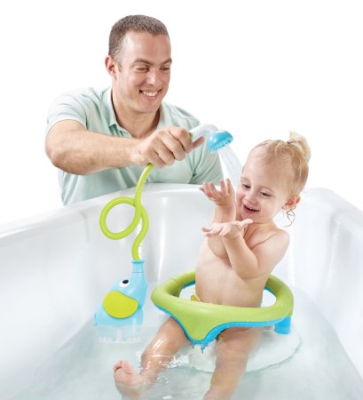 Elefant med lååångt snabelduschhuvud - Och det bästa är att duschen kan duscha på riktigt. När barnet trycker på den lilla knappen suger elefanten vatten från badkaret och skapar en oändlig ström av vatten.