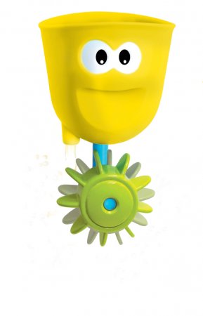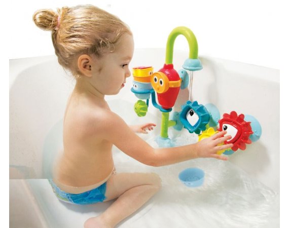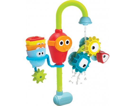 Det medföljer också ett litet aktivitetscenter med 3 tillhörande "kugghjul" som snurrar när du låter kranvatten rinna ner över dem.