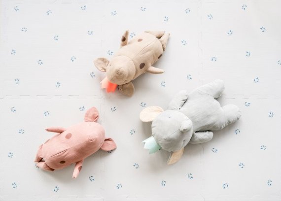 Här får du en vacker och stor golvplatta i EVA-skum från 3 Sprouts, naturfärgad med sött blåbärstryck.