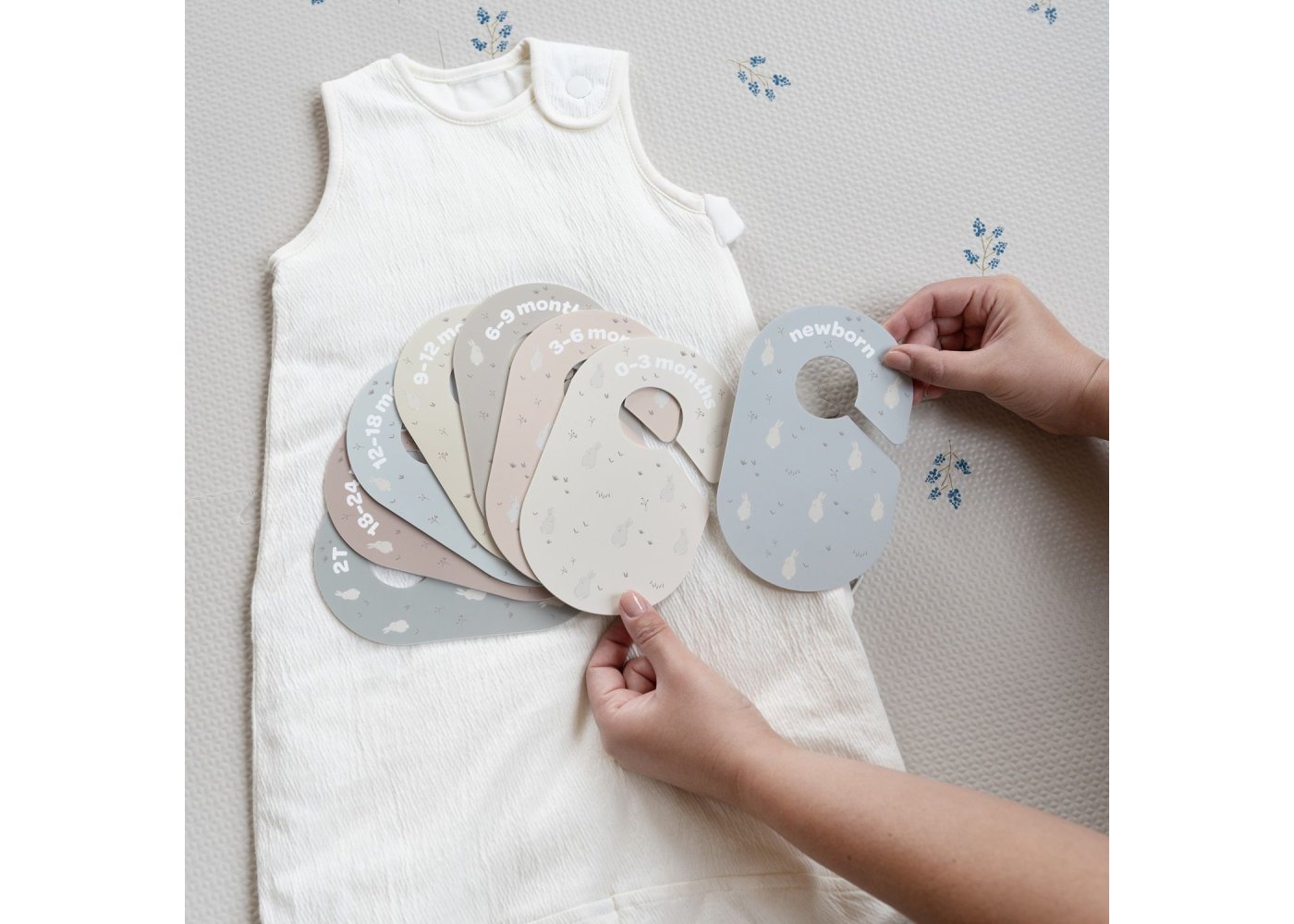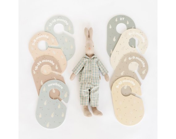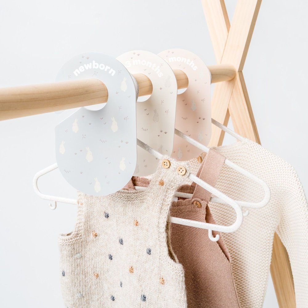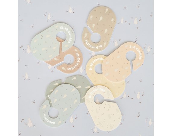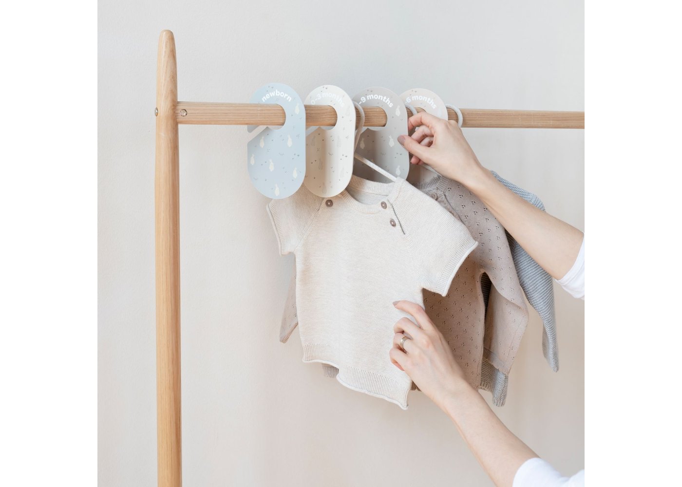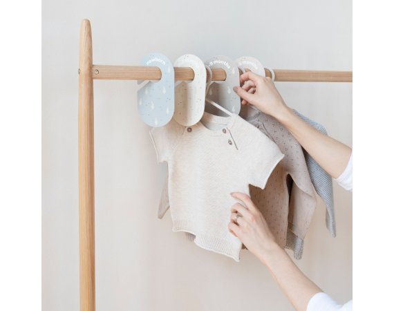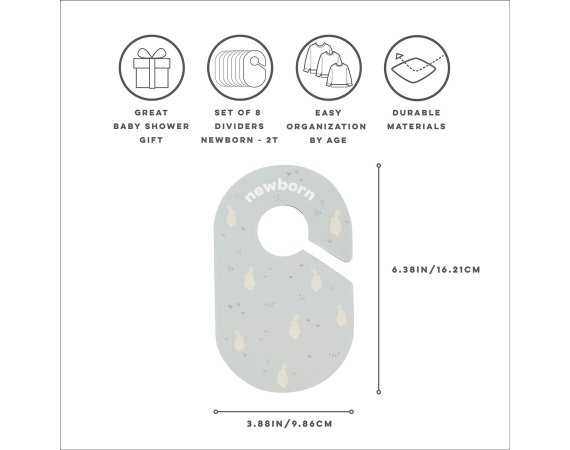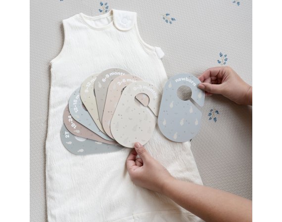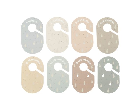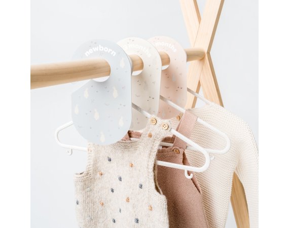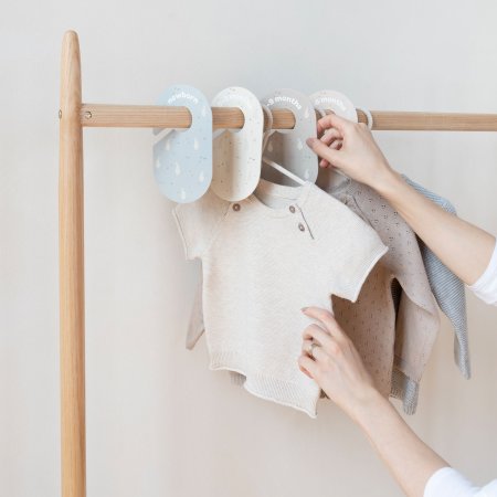 Nu blir det mycket lättare att sortera både nya kläder och de begagnade kläderna du har haft turen att ärva från en god vän. Garderobsdelarna passar standard galgstänger och trådhyllor. De har alla tryck med åldersangivelser på båda sidor, vilket gör det enklare än någonsin att förvara, organisera och snabbt hitta ditt barns kläder!