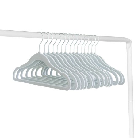 Bygeln har mjuka rundade kanter som ser till att kläderna håller formen. Den har en velourfinish med en halkfri yta och små urtag för remmar, som tillsammans ser till att plagget sitter stadigt på galgen utan att falla ner.