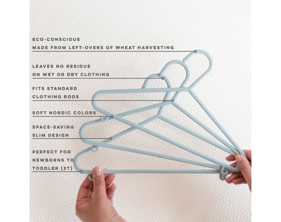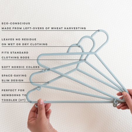 Den fina hängaren är tillverkad av miljövänlig vetehalm, och har en smal profil som är platsbesparande i garderoben.