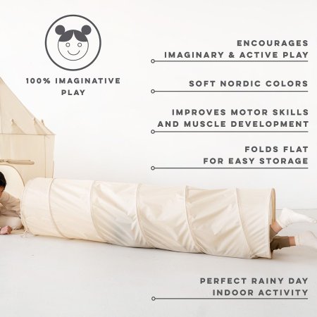 En popup-tunnel uppmuntrar till fantasifull lek och aktiverar barnet fysiskt, och är därför perfekt att ha i barnrummet. Pop-up-tunneln är också mycket lätt att ta med sig runt i hemmet, och även på en helg- eller semesterresa.