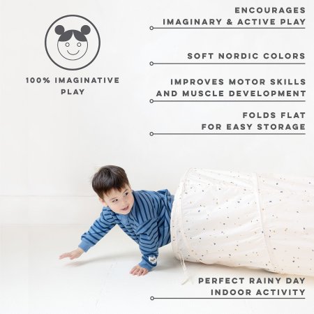 En popup-tunnel uppmuntrar till fantasifull lek och aktiverar barnet fysiskt, och är därför perfekt att ha i barnrummet. Pop-up-tunneln är också mycket lätt att ta med sig runt i hemmet, och även på en helg- eller semesterresa.