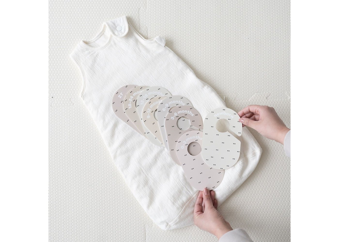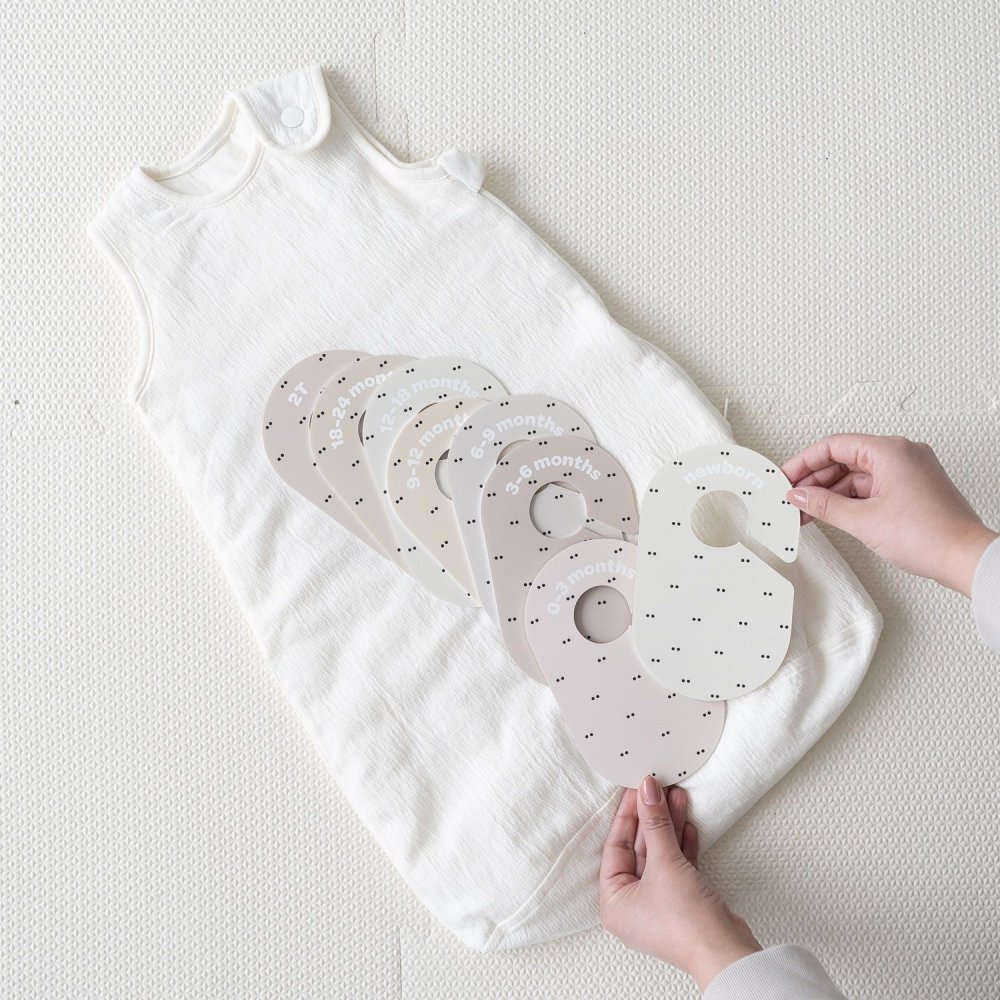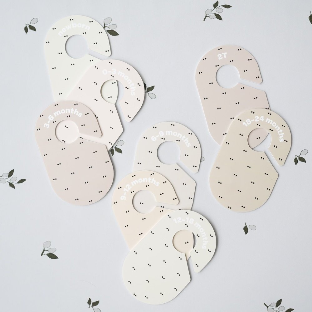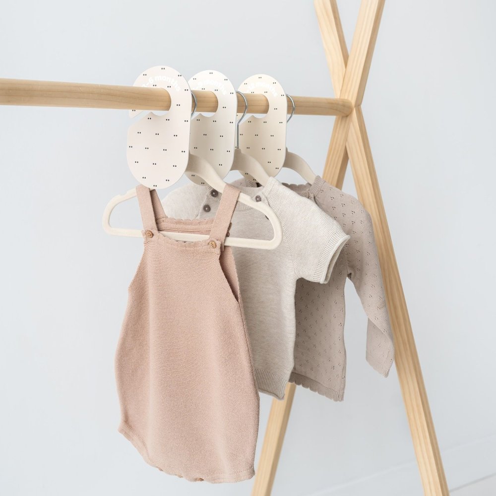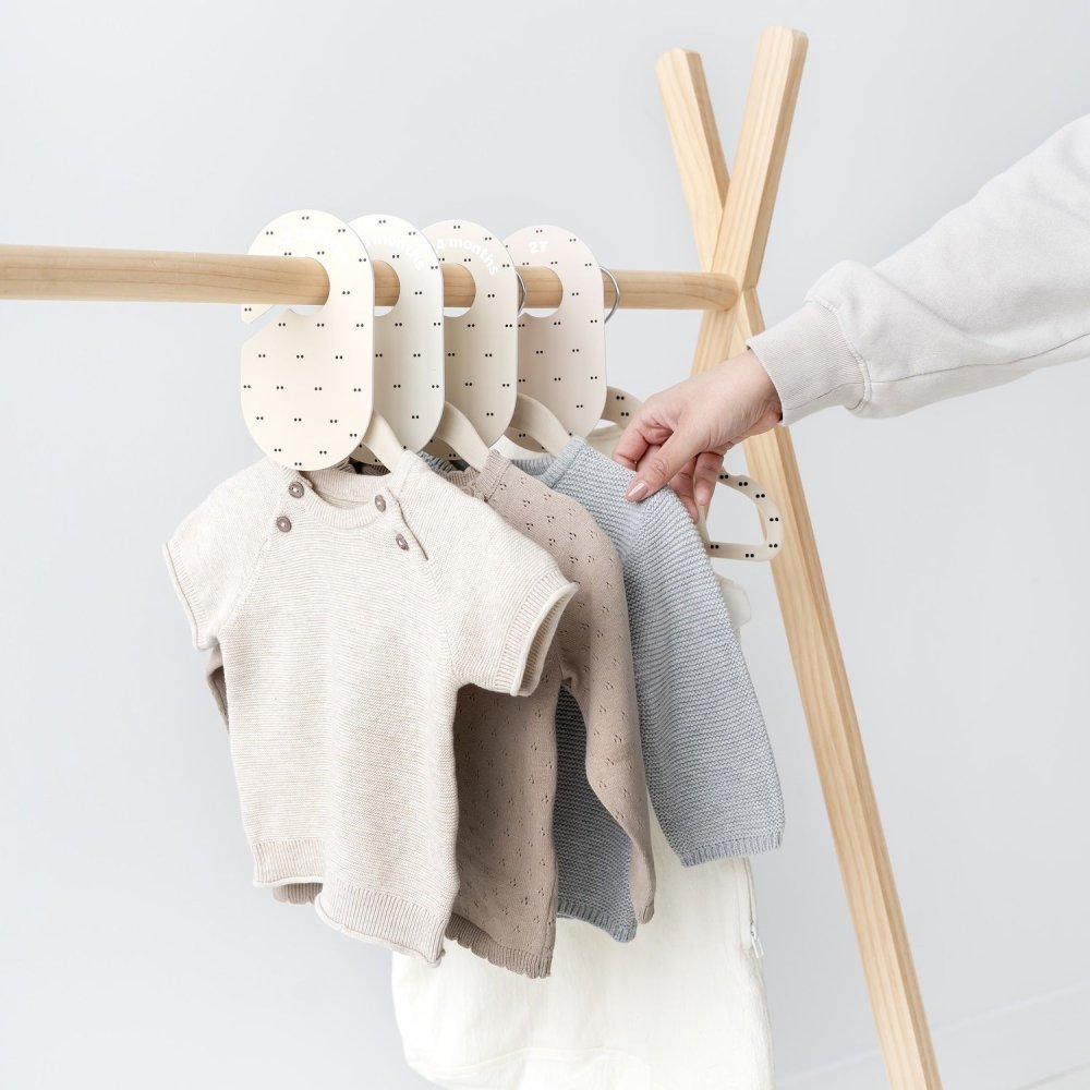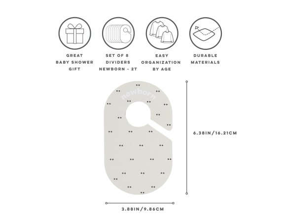 Nu blir det mycket lättare att sortera både nya kläder och de begagnade kläderna du har haft turen att ärva från en god vän. Garderobsdelarna passar standard galgstänger och trådhyllor. De har alla tryck med åldersangivelser på båda sidor, vilket gör det enklare än någonsin att förvara, organisera och snabbt hitta ditt barns kläder!