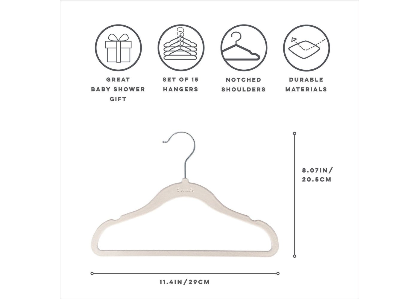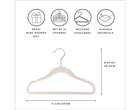 Du får 15 lyxiga velourgalgar med mjukt avrundade kanter som säkerställer att kläderna behåller sin form.