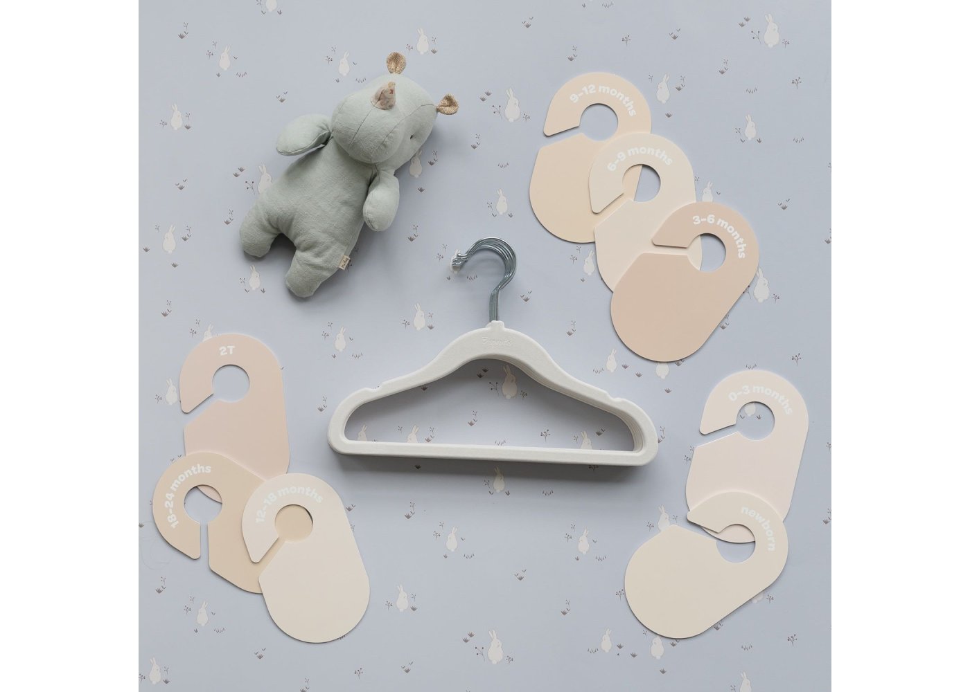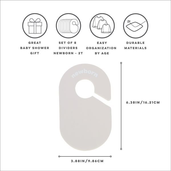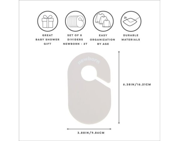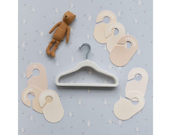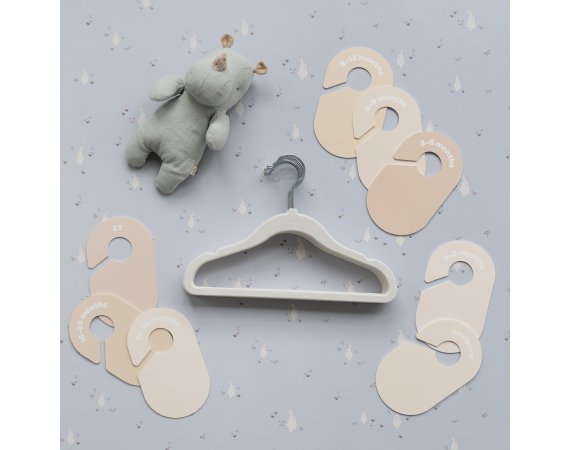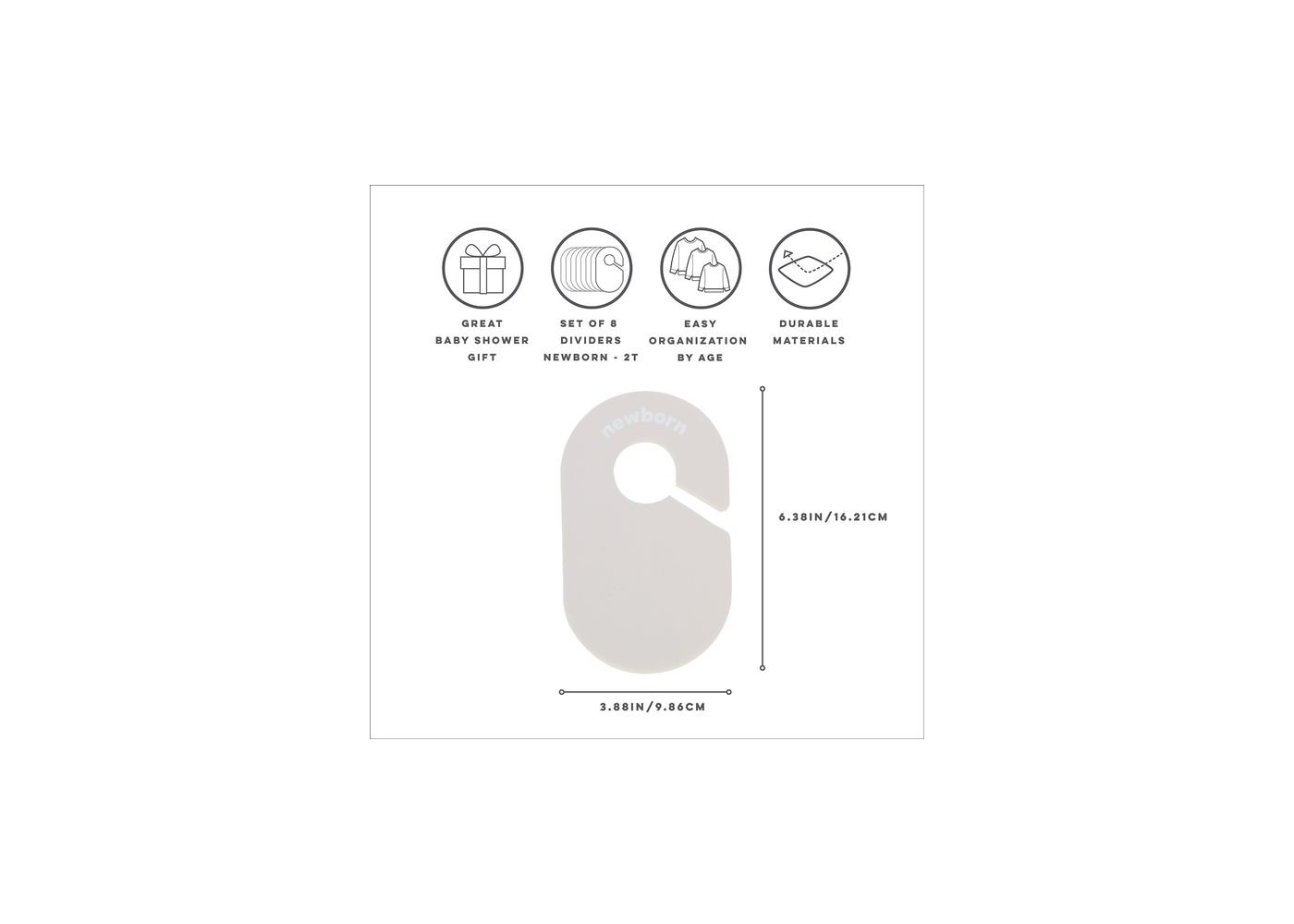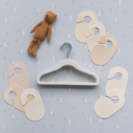 Och 8 garderobsdelare för att göra det enkelt att sortera både nya och begagnade kläder, som du har haft turen att ärva från en god vän. Garderobsdelarna passar standard galgstänger och trådhyllor. De har alla tryck med åldersangivelser på båda sidor, vilket gör det enklare än någonsin att förvara, organisera och snabbt hitta ditt barns kläder!