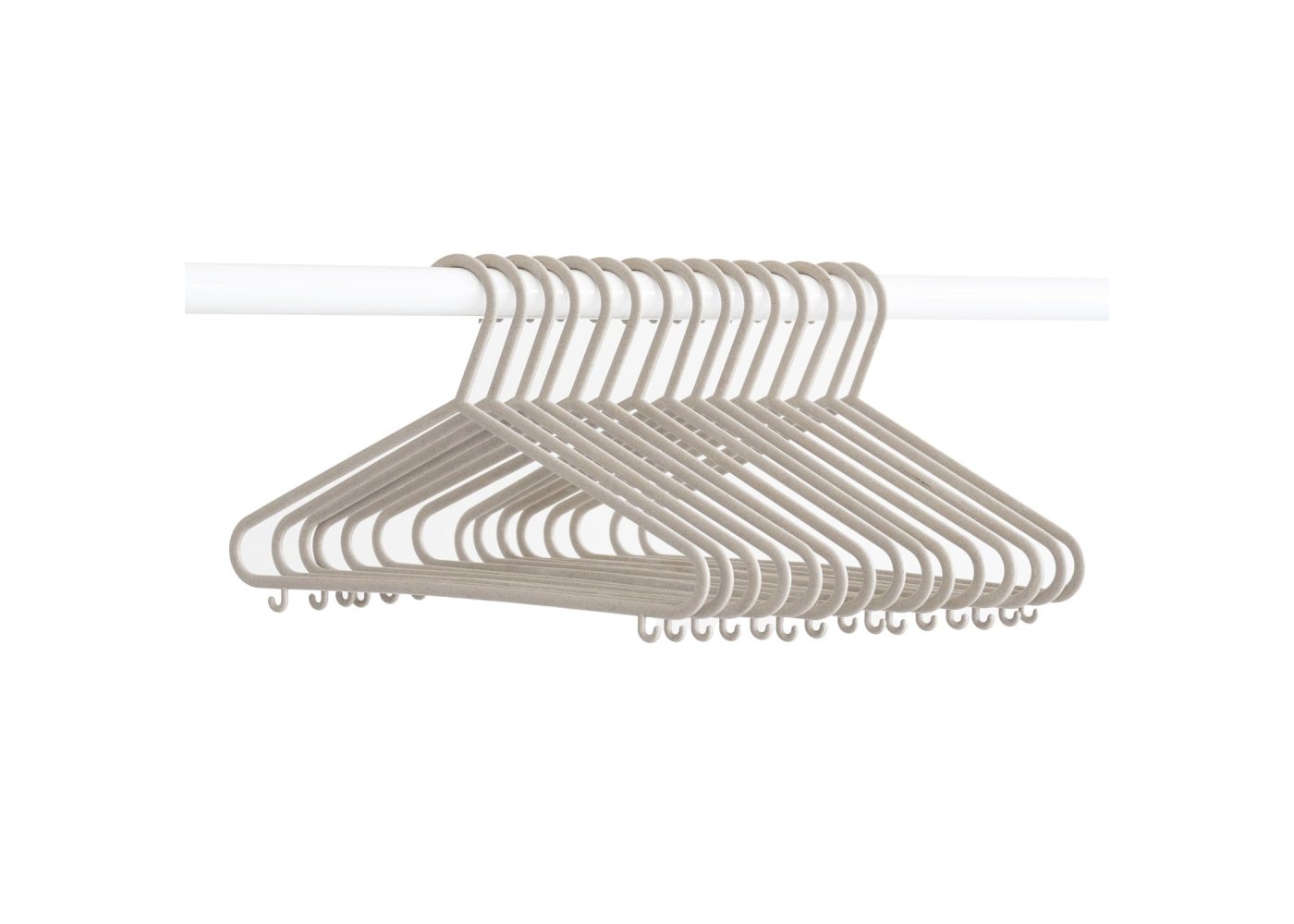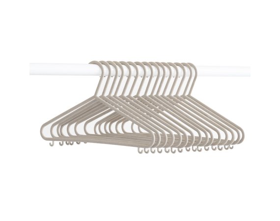 Set med 15 snygga och miljövänliga galgar i krämfärg.