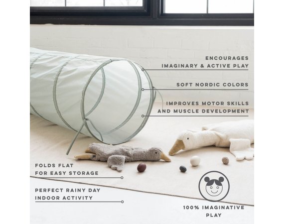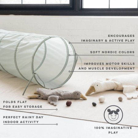 3 Sprouts lektunnel gör det roligt för barn att utforska, gömma sig och krypa genom tunneln – en aktivitet som stärker både motorik, balans och fantasi.