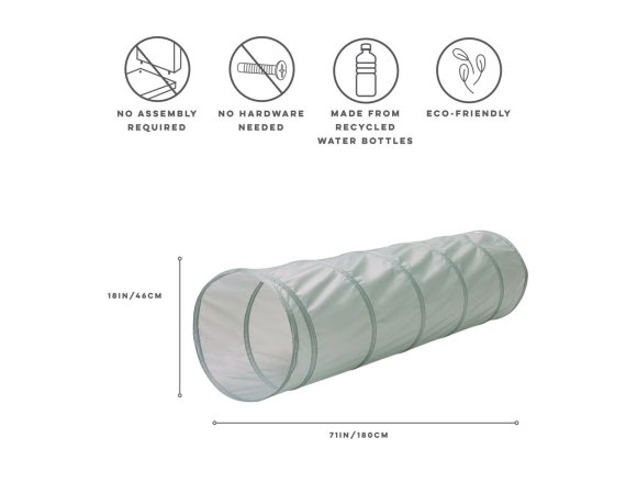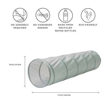 Tunneln fälls upp automatiskt och är lika lätt att packa ihop igen, så den kan användas både i vardagsrummet, i rummet eller i trädgården. Levereras med en påse så att den kan förvaras platt när den inte används.