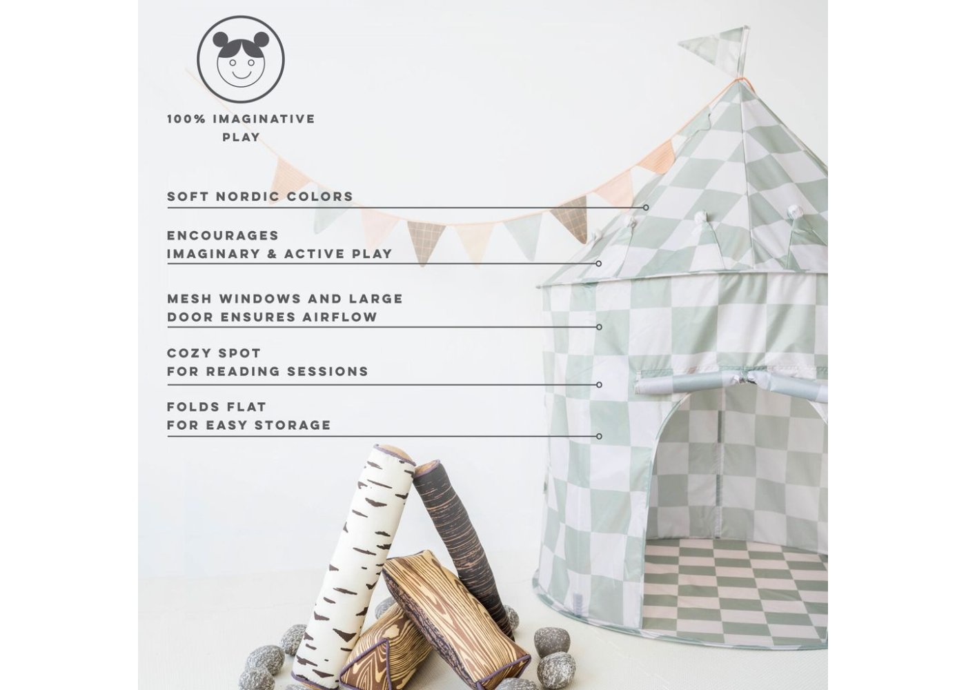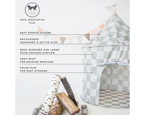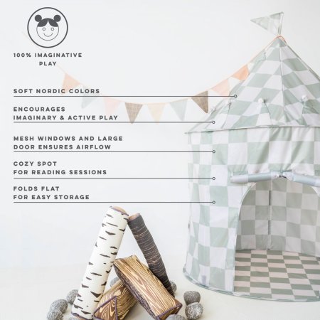 Det eleganta lektältet passar perfekt in i moderna barnrum och inbjuder till timmar av kreativ lek.