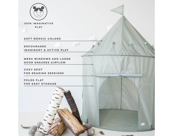 Det eleganta lektältet passar perfekt in i moderna barnrum och inbjuder till timmar av kreativ lek.