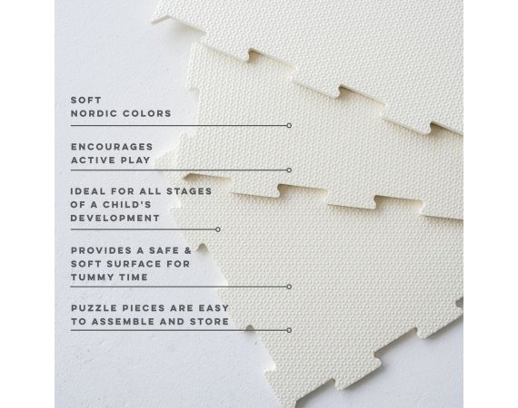Skummattan isolerar mot kyla från golvet och skyddar golvet mot repor om leksaker tappas.