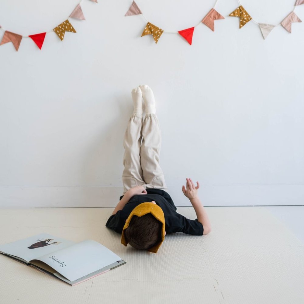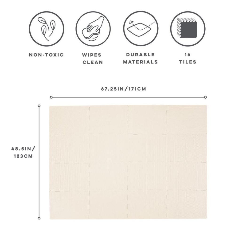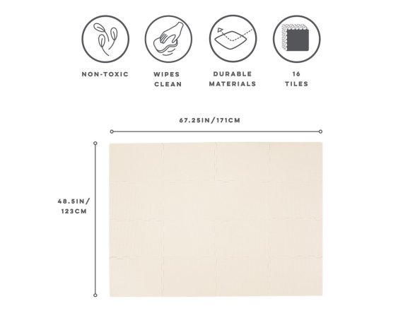 Skummattan har en mjuk yta som är bekväm för ditt barn att sitta eller ligga på under lek. Den kan även användas för yoga och andra träningsaktiviteter.